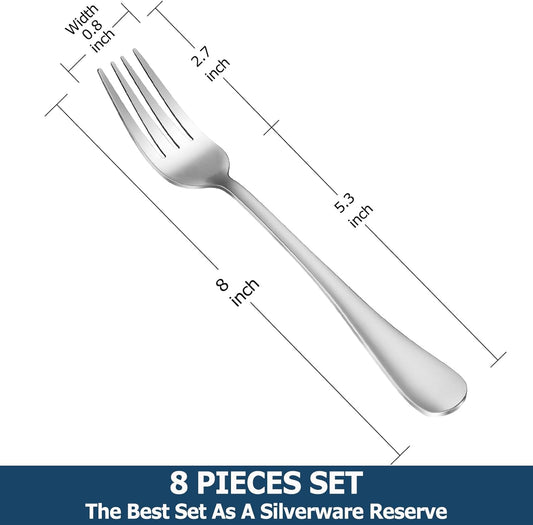 8 Pieces Dinner Forks Set, Food-Grade Stainless Steel Forks, Silverware Forks for Home, Kitchen or Restaurant, Mirror Polished, Dishwasher Safe - 8 Inch
