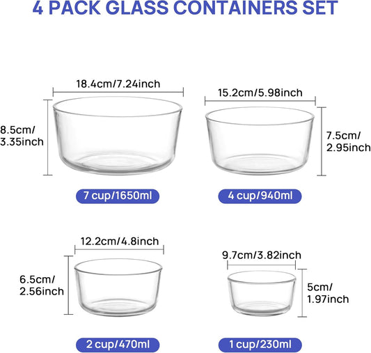 4 Pack Glass Bowls with Lids (1, 2, 4, 7 Cup), Food Storage Containers, Meal Prep and Leftovers Keeper, Lunch Container, Microwave, Dishwasher & Freezer SafeVendor:BodPeaceRegular price $54.99 USDRegular priceUnit price / per$74.99 USDSale price $54.99 USDSale