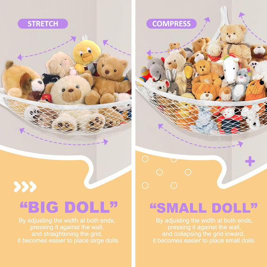Stuffed Animal Net Hammock for Plushie Toys, Stuffed Animal Hammock Corner for Kids' Room Decor, Ideas for Organizing Stuffy Collection, Easy to Hang with Anchors & Hooks, 2 Packs, White