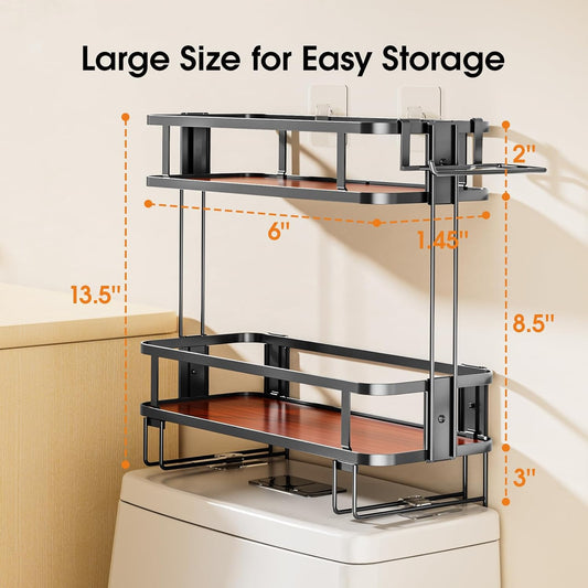 2-Tier Over-The-Toilet Storage Shelf, Bathroom Organizer, Large Capacity, No-Drill Installation, Rust-Resistant Thick Material, Perfect for Bathroom Shelf, Black