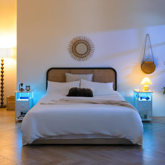 Nightstand with Charging Station, LED Night Stand with Fabric Drawers and Storage Shelf for Bedroom, Nightstands Bedside Tables with USB Ports & Outlets, Small Night Stands, Bed Side TableVendor:BodPeaceRegular price $91.99 USDRegular priceUnit price / per$124.99 USDSale price $91.99 USDSold out