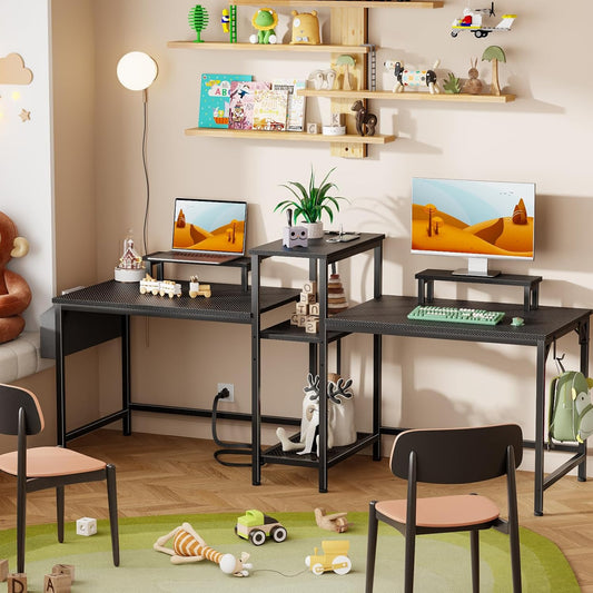 2 Person Gaming Desk with LED Lights, 71 Inch Computer Desk with Power Outlets and Monitor Stand, Double Desk with Storage Bag and Headphone Hooks, Study Writing Table for Home Office, BlackVendor:BodPeaceRegular price $167.99 USDRegular priceUnit price / per$226.99 USDSale price $167.99 USDSale
