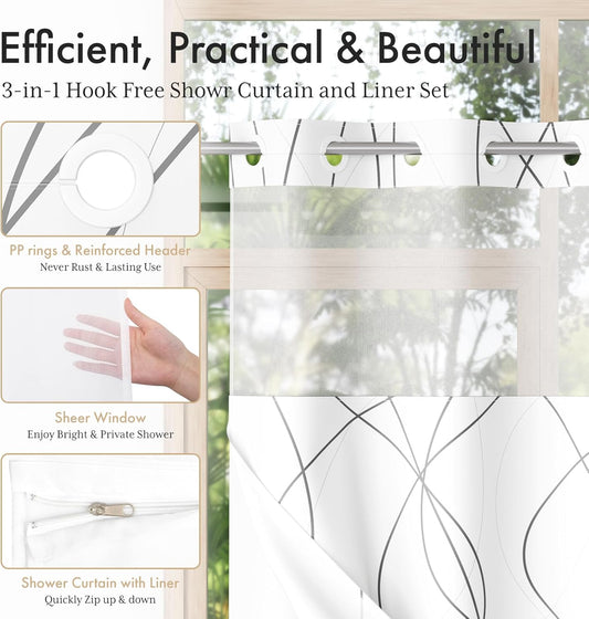 No Hook Shower Curtain and Liner Set, Shower Curtain with Liner and Hooks Built-In Less Time, Heavy Duty Double Waterproof Farmhouse Shower Curtain Set for Bathroom, Grey, 74"X72"Vendor:BodPeaceRegular price $55.99 USDRegular priceUnit price / per$75.99 USDSale price $55.99 USDSale