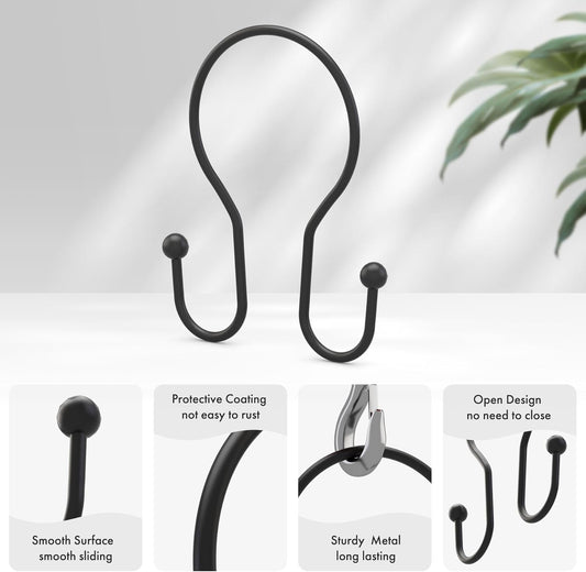 Shower Curtain Hooks, Black Rust Proof Non-Slip Double Hooks for Shower Curtain, Sturdy Metal Rings Bathroom 12PcsVendor:BodPeaceRegular price $35.99 USDRegular priceUnit price / per$48.99 USDSale price $35.99 USDSale