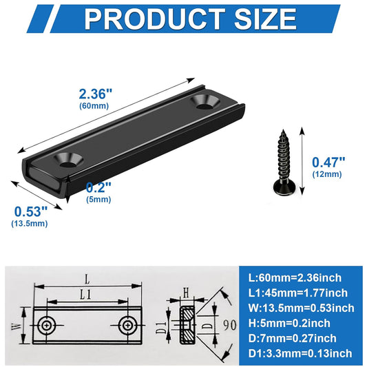 Neodymium Rectangular Pot Magnets 80Lbs, 60X13.5X5Mm Strong Bar Magnets with Countersunk Hole, Rare Earth Magnet for Mounting,Cabinet Magnet for Magnetic Door Catch, Black Pack of 6