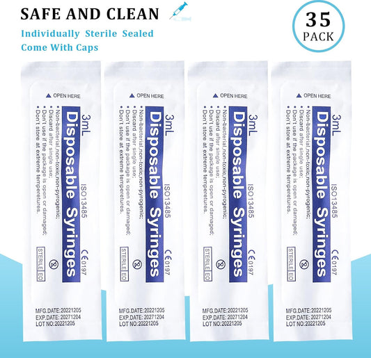 35 Pack 3Ml Plastic Syringe without Needle, Catheter Tip Individually Sealed for Liquid, Sterile - Syringes Tools for Feeding Pets, Measuring, Scientific Labs, Oil or Glue ApplicatorcVendor:BodPeaceRegular price $37.99 USDRegular priceUnit price / per$51.99 USDSale price $37.99 USDSale
