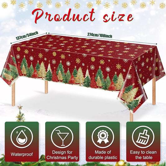 3Pcs Christmas Disposable Tablecloths Rectangle,Christmas Trees Red Plastic Table Cloth,Waterproof Winter Snowflakes Table Cover for Xmas Holiday Home Dinner Party Decorations,54 X 108 Inch