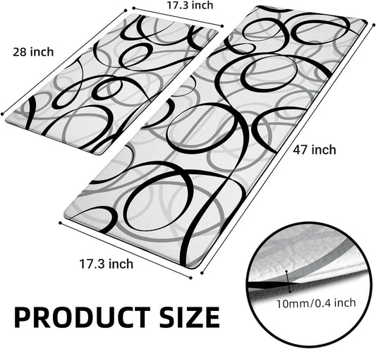 Kitchen Mats Cushioned anti Fatigue Kitchen Rugs Sets of 2 Black White Grey Memory Foam Padded Kitchen Floor Mat Non Slip Waterproof Comfort Standing Mats for Sink Laundry Office