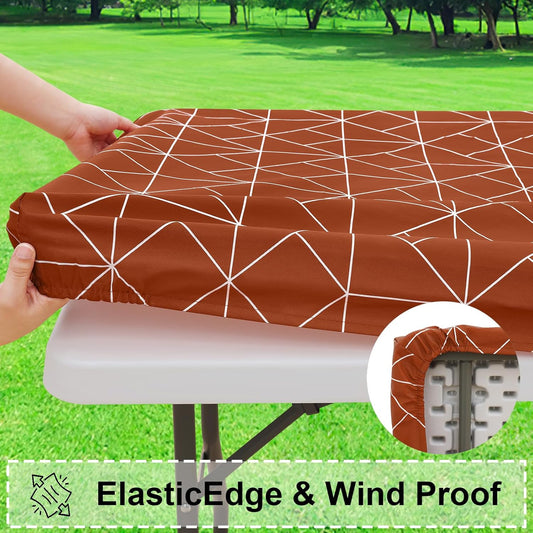 Rectangle Vinyl Tablecloth, 4 Foot Elastic Fitted Table Cover with Flannel Backing, 100% Waterproof Plastic Table Cloth for Picnic, Camping, Outdoor (Rust, 30X48 Inch)