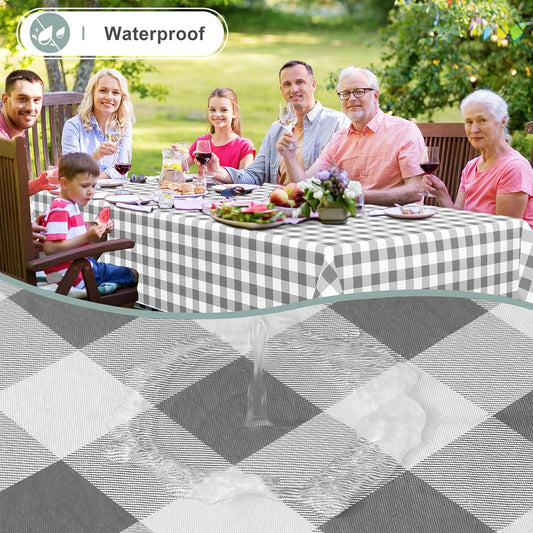 Rectangle Waterproof Vinyl Table Cloth, Buffalo Flannel Backed Tablecloth, Wipeable Plastic Table Cover for Dinner, Kitchen, Outdoor (60" X 84", Grey and White)