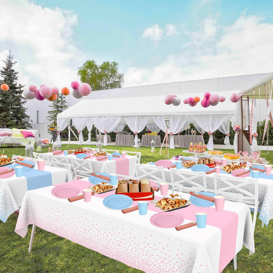 2 Pack Pink and Blue Tablecloths, Gender Reveal Disposable Plastic Waterproof Table Cover for Boy or Girl Gender Reveal Party, Baby Shower, Birthday Party Decorations 54" X 108"