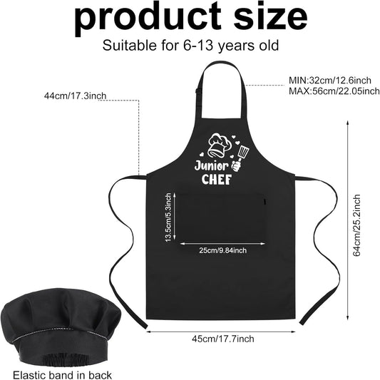 Kids Apron and Chef Hat Set Adjustable Waterproof 2 Pockets