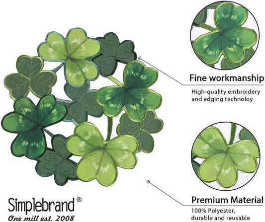 St. Patrick'S Day Placemats Set of 4, round Placemats Applique Embroidered Cutwork Spring Placemats with Irish Clover for Dining Irish Shamrock Spring Festival Tabletop Decor (15"RD, 4Pcs)