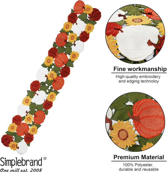 Thanksgiving Table Runner 70 Inches Long, Fall Table Runner Cutwork Applique Embroidered Pumpkin with Sunflower Dresser Scarf for Home Dining Holiday Autumn Halloween Decor, 13 X 70 Inch