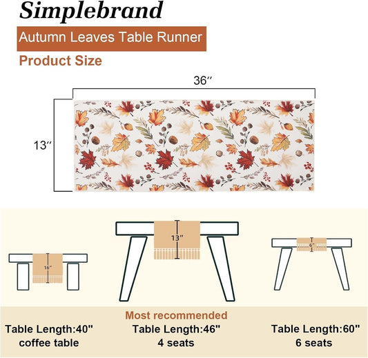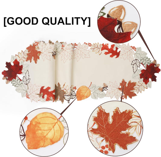 Harvest Fall Table Runner 36 Inches Long for Thanksgiving, Cutwork with Applique Embroidered Maple Leaves Dresser Scarf Table Topper for Home Dinner Holiday Festival Decorations, 13" X 36"
