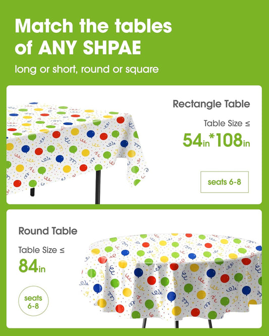 Plastic Table Cloth Disposable 10 Pack, 54 X 108 Inch Table Cloths, Birthday Party Decorations, Picnic, White Tablecloths, Rectangle, Colorful, Rainbow Cover, Leakproof & Sturdy, Balloon