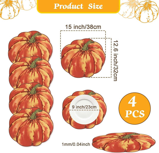 Red Pumpkin Placemats Set of 4, Fall Pumpkin Printed Dining Table Mats for Kitchen, Stain-Resistant, Protecting the Dining Table Washable Place Mats for Halloween, Thanksgiving, 13"X15"