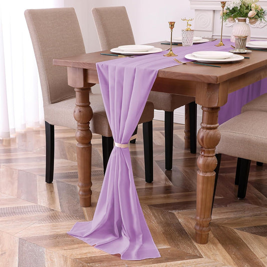 Lilac Table Runner 10FT Chiffon Table Runner 28 X 120 Inches Wedding Table Runner Romantic Table Deco for Bridal Shower Birthday Party Cake Table, 2 Packs, Lilac