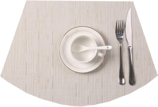 Small round Table Placemats Set of 5 Wedge Shaped Place Mat with Centerpiece round Mat Heat Resistant Table Mats Washable (5, Beige)