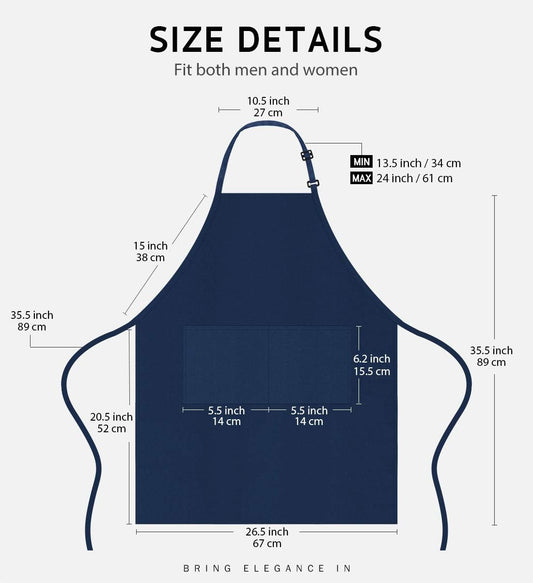 2 Pack Kitchen Aprons, Apron for Cooking with 2 Pockets for Men Women Adjustable Bib Chef Apron