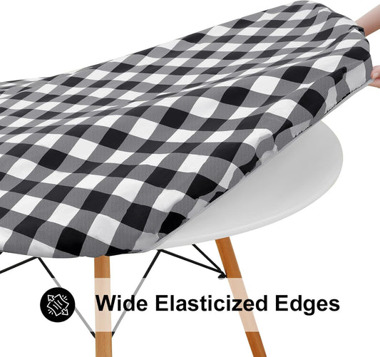 round Picnic Tablecloth, Elastic Waterproof Fitted Vinyl Tablecloths for 36"-44" Tables, Flannel Backed Buffalo Plaid Table Cover for Dining, Camping, Outdoor, Black and White