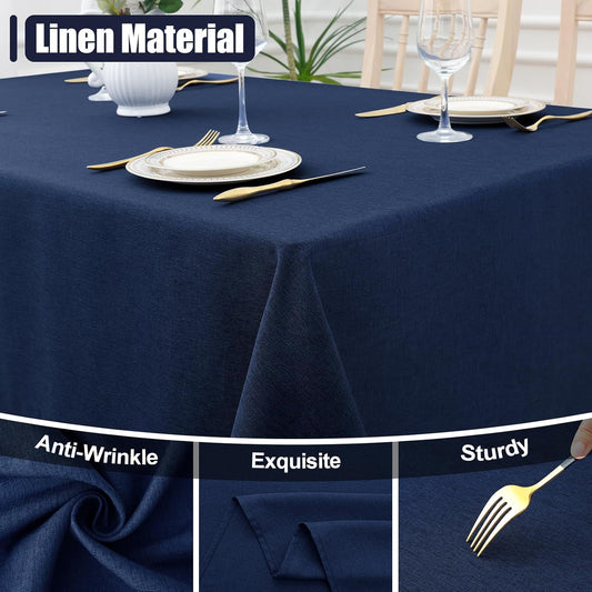 Rectangle Table Cloth Linen Textured, Waterproof Spillproof Anti-Wrinkle Burlap Tablecloth, Washable Decorative Fabric Table Cover for Dining, Party, Banquet, 52 X 70 Inch, Navy