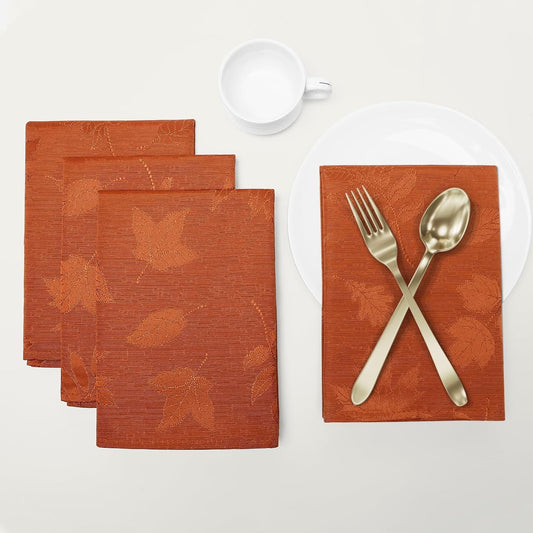 Thanksgiving Napkins Set of 4, 18X18 Inch Waterproof Fabric Fall Napkins, Autumn Leaves Damask Napkins for Harvest Parties, and Holiday Dinner, Rust