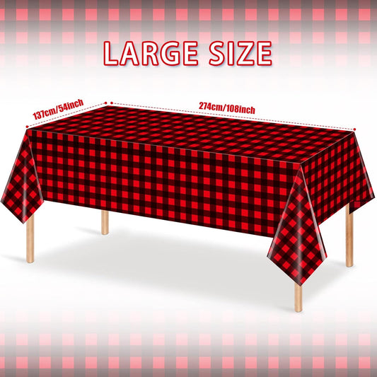 1 Pack Christmas Buffalo Plaid Party Tablecloth Decorations, Disposable Waterproof Red and Black Lumberjack Checkered Plaid Table Cover Backdrop for Christmas Winter Holiday Party Supplies, 54X108Inch