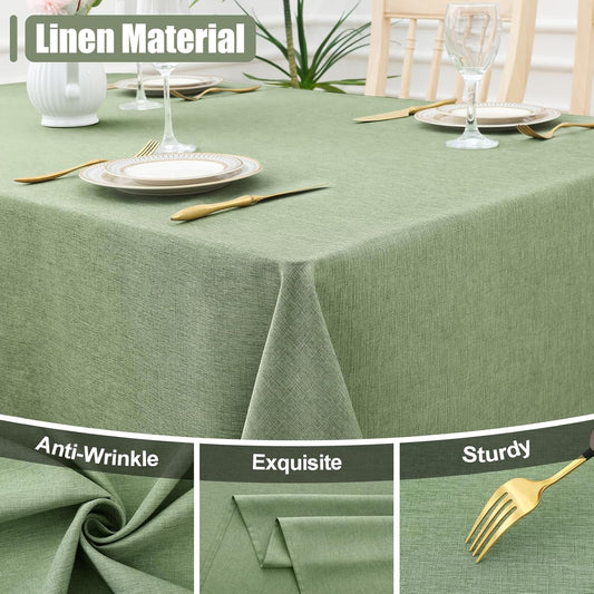 Rectangle Table Cloth Linen Textured, Waterproof Spillproof Anti-Wrinkle Burlap Tablecloth, Washable Decorative Fabric Table Cover for Dining, Party, Banquet, 52 X 70 Inch, Sage Green