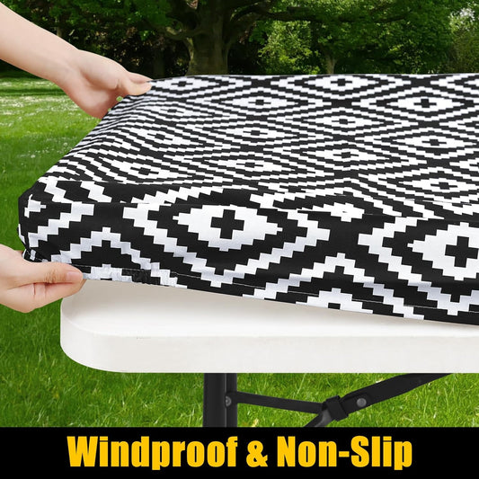 Rectangle Picnic Table Cloth, Waterproof Elastic Fitted Outdoor Tablecloths for 6 Foot Tables, Wipeable Flannel Backed Vinyl Table Cover for Camping, Dining and Indoor (30"X72", Black)