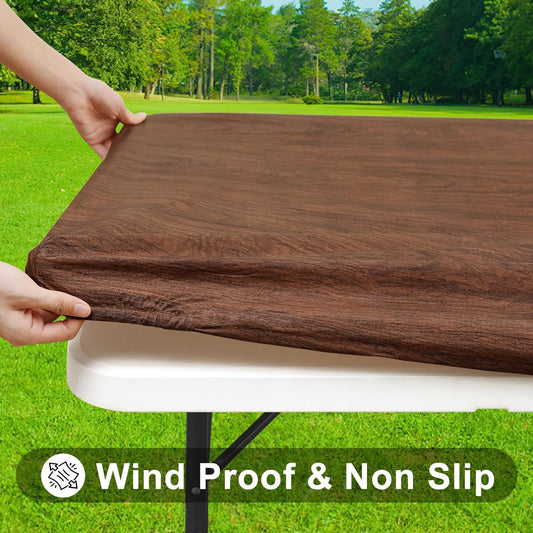 Rectangle Picnic Tablecloth, Waterproof Elastic Fitted Table Covers for 6 Foot Tables, Wipeable Flannel Backed Vinyl Tablecloths for Camping, Indoor, Outdoor (Brown, 30X72 Inches)