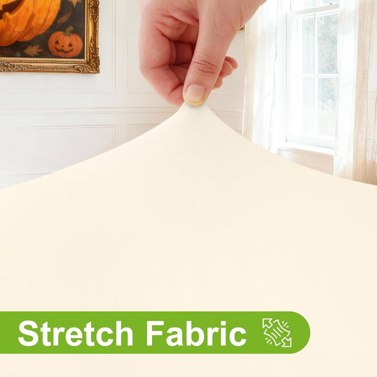 round Spandex Tablecloth, Elastic Fitted Washable Tablecloths for 36"-44" Tables, Waterpoof Stretch Picnic Table Cover for Dining, Indoor and Outdoor, Beige