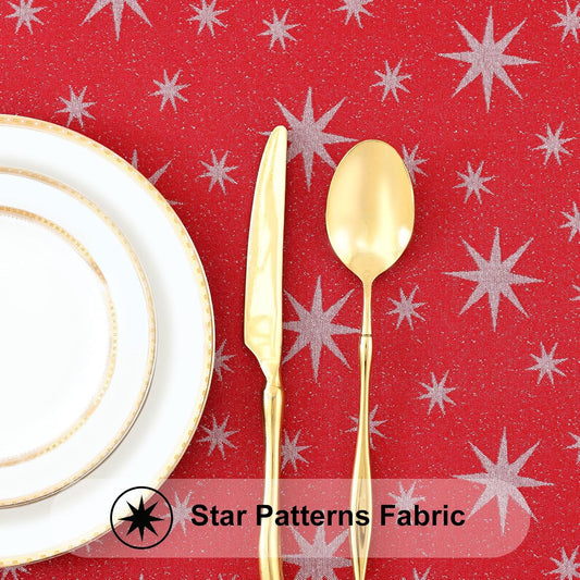 Rectangle Christmas Red Tablecloth, 60X84 Inch Waterproof Damask Table Cloth, Star Patterns Fabric Table Covers for Christmas Dinner, and New Year Celebration, Red