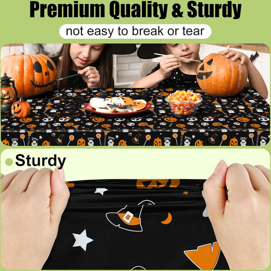 Disposable Table Cloth - 10 Pack, 54 X 108 Inch Waterproof Rectangle Tablecloths for Parties, Decorative Plastic Table Cover, Leakproof & Sturdy, Black & Silver