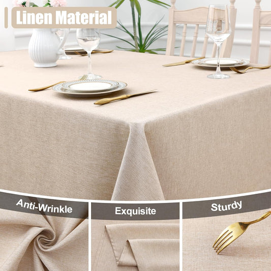 Rectangle Table Cloth Linen Textured, Waterproof Spillproof Anti-Wrinkle Burlap Tablecloth, Washable Decorative Fabric Table Cover for Dining, Party, Banquet, 52 X 70 Inch, Linen