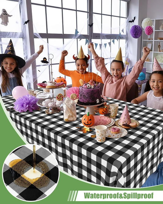 Plastic Table Cloth Disposable 3 Pack, 54X108 Inch Rectangle Waterproof Table Cover for Parties, Decorative Buffalo Plaid Vinyl & Solid Tablecloths, Leakproof & Sturdy, Black and White
