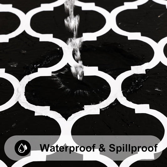 Rectangular Waterproof Vinyl Tablecloth with Flannel Backing, Wipeable and Spillproof for Indoor and Outdoor Use (60" x 84", Black)