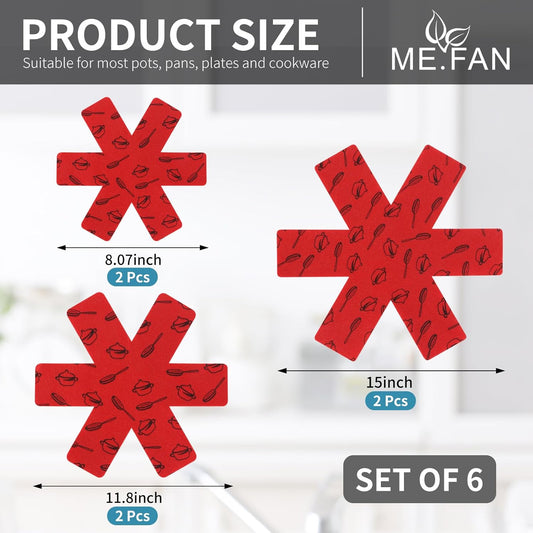 Pot and Pan Protectors, 6 Set (7.9" 11.8" 15"), Felt Cookware, Kitchenware Separators Protector for Stacking to Avoid Scratching Red