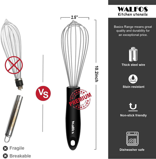 Stainless Steel Whisk - Kitchen Balloon Whisk, Thick Stainless Steel Wire & Strong Handles, Egg Frother for Cooking, Blending, Whisking, Beating and Stirring (10 Inches)