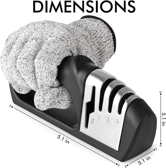 4In1 Knife Sharpener, 3 Stage Manual Sharpener for Sharpening Kitchen Knives 1 Stage for Scissors- Ceramic Stone, Tungsten Carbide Plates, Diamond Rods