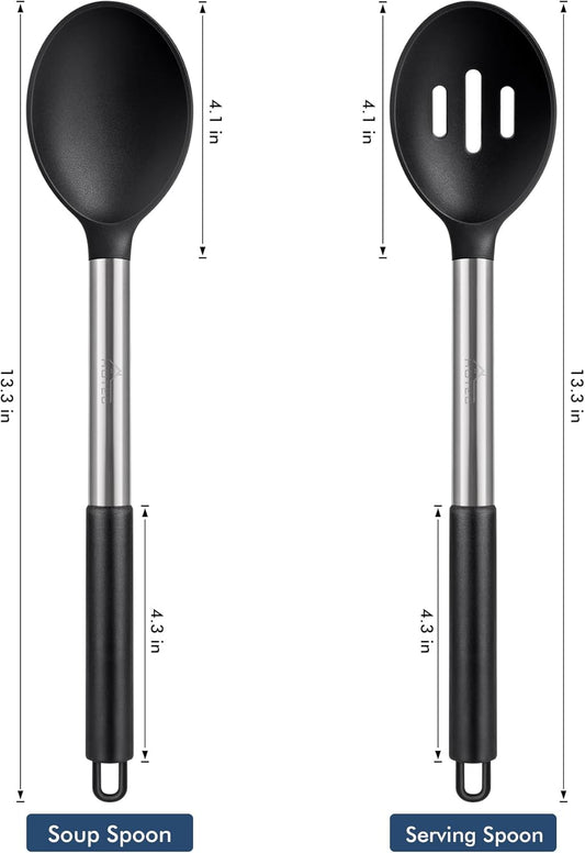 446°F Heat Resistant Large Silicone Cooking Spoon, BPA Free Solid Slotted Spoons, Nonstick Kitchen Cookware Utensils, Mixing, Serving, Stiring Large Spoons, Black