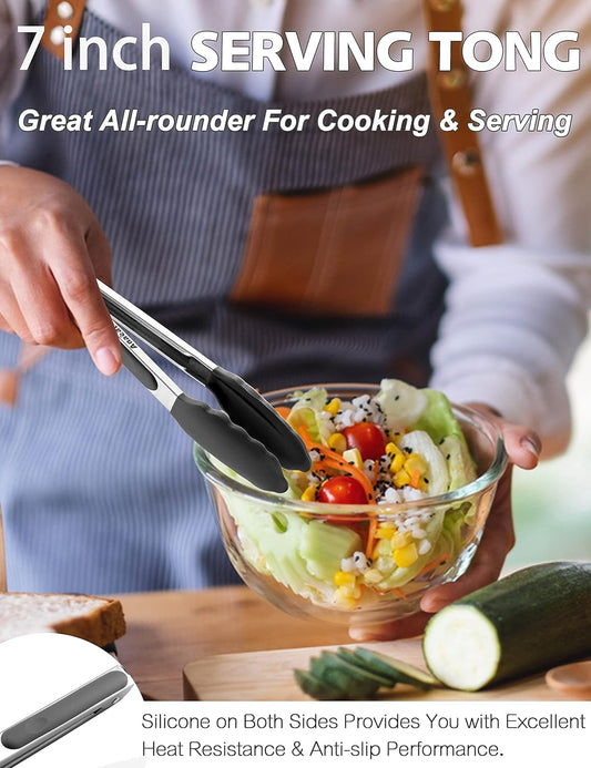 Non-Stick Silicone Locking Tong - Stainless Steel 7" Mini Kitchen Food Tongs with Non-Slip Silicone Tips and Grip for Cooking, Baking and BBQ - Heat Resistant up to 480°F (Black)Vendor:BodPeaceRegular price $36.99 USDRegular priceUnit price / per$49.99 USDSale price $36.99 USDSale