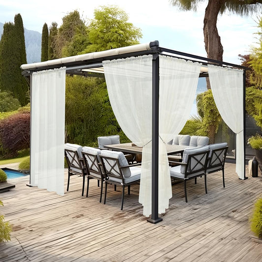 Outdoor Sheer Curtain for Patio, Waterproof White Linen Look Semi-Sheer Privacy Drapes for Gazebo, Porch, Pergola, Cabana, 2 Panels,54W X 96L