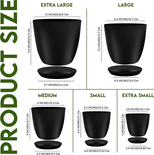 - Plant Pots Indoor with Drainage - 7/6.6/6/5.3/4.8 Inches Flower Pots for Indoor Planter - 5 Pack Plastic Planters - Ideal for Stocking Stuffers or Home Christmas Decorations - Black