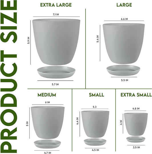 - Plant Pots Indoor with Drainage - 7/6.6/6/5.3/4.8 Inches Flower Pots for Indoor Planter - 5 Pack Plastic Planters - Ideal for Stocking Stuffers or Home Christmas Decorations - Gray