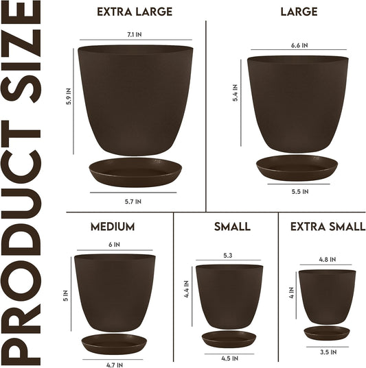 Plastic Planters - Flower Nursery Pots Indoor Modern Decorative Plastic Pots for Plants, Succulents, Flowers, and Cactus (5 Pack, Multisize, Brown)