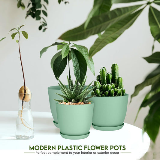 - Plant Pots Indoor with Drainage - 7/6.6/6/5.3/4.8 Inches Home Decor Flower Pots for Indoor Planter - Pack of 5 Plastic Planters for Indoor Plants, Cactus, Succulents Pot - Mint
