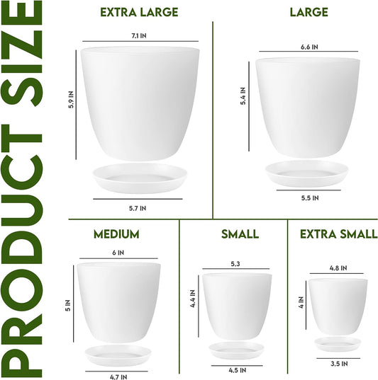 - Plant Pots Indoor with Drainage - 7/6.6/6/5.3/4.8 Inches Garden Flower Pots for Indoor Planter - 5 Pack White Plastic Planters - Ideal for Stocking Stuffers or Room, Office Home Decor
