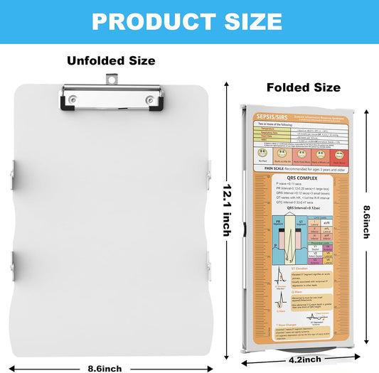 Clipboards Nursing Clipboard Trifold Foldable, 3 Layers Aluminum Nurse Clipboards with Nursing Edition Cheat Sheets Folding Pocket Size for Students, Nurses and Doctors (Light G)