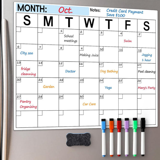Dry Erase Magnetic Calendar for Refrigerator - Monthly Planner Magnet Whiteboard for Fridge Wall Door - Shopping, Meal/Menu, to Do List, Family Schedule Planning Board with 6 Markers - Black